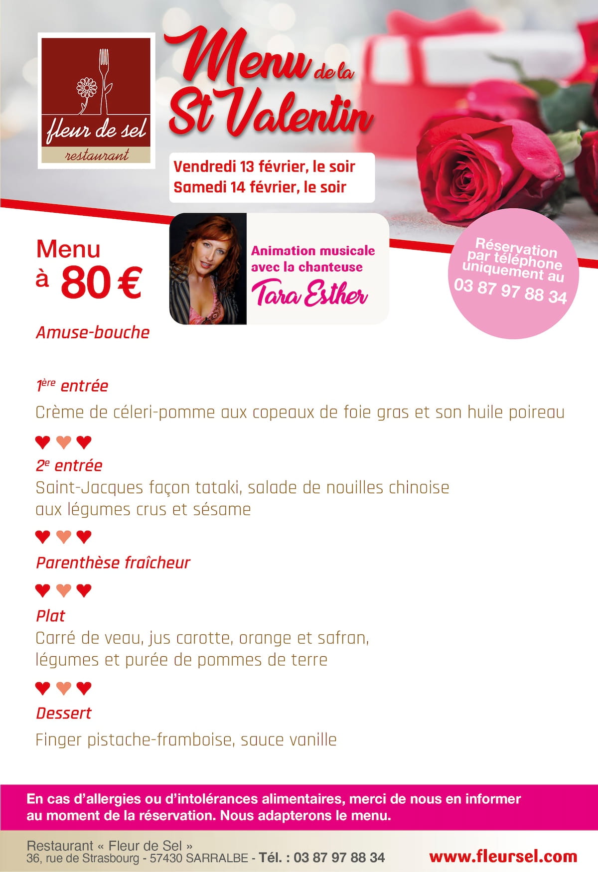 Menu 3 plats : 46 € (*) Entrée, plat et dessert
